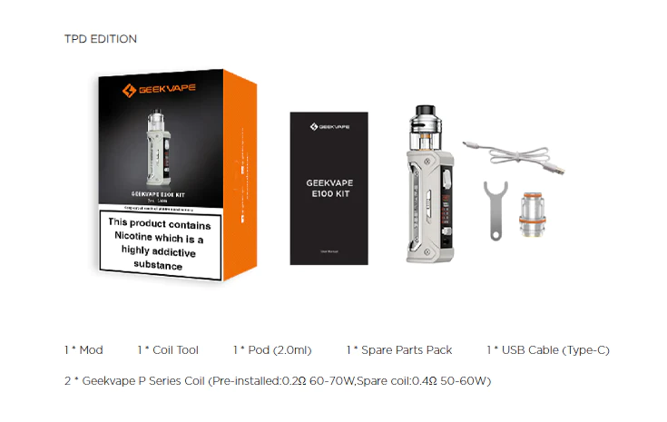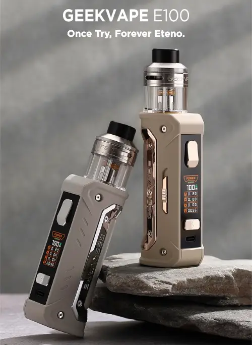 The GEEK VAPE AEGIS ETENO (E100) KIT is a must-have sub-ohm kit for anyone looking for a versatile device that packs a serious punch. The Aegis Eteno is capable of outputting up to 100W and with a 18650 battery (sold separately), you’ll be able to do some serious DTL vaping for more than a few days before you need to charge up! Moreover, the device is fitted with a Smart AS-CHIP (3.0), which amps up the performance of the device so it can ignite e-liquid more rapidly. The E100 pods are designed to be completely leak-proof, so you’ll never have to worry about e-liquid seepage when you take the kit out on your adventures!