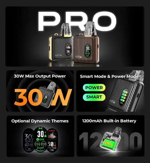 With intelligent UI, the Xlim SQ Pro displays battery and power levels, puff counts and temperature, and an easy-to-navigate menu with multiple modes.