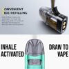The Caliburn A3S pod vaping kit comes complete with side-filling A3S in-built coil pods but can utilise the original A3 replacement pods with a top-filling design.