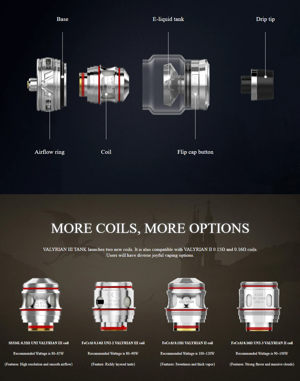 Uwell Valyrian 3 Tank is the latest release from Uwell in their Valyrian Series. We have seen many great tanks from the engineers across the lands but this one has been a long time coming and certainly worth the wait! Designed for DTL vaping you will not be disappointed. Grab one today before they go as we are predicting this will be a huge success- even bigger than the Valyrian Pro Sub Ohm Tank!